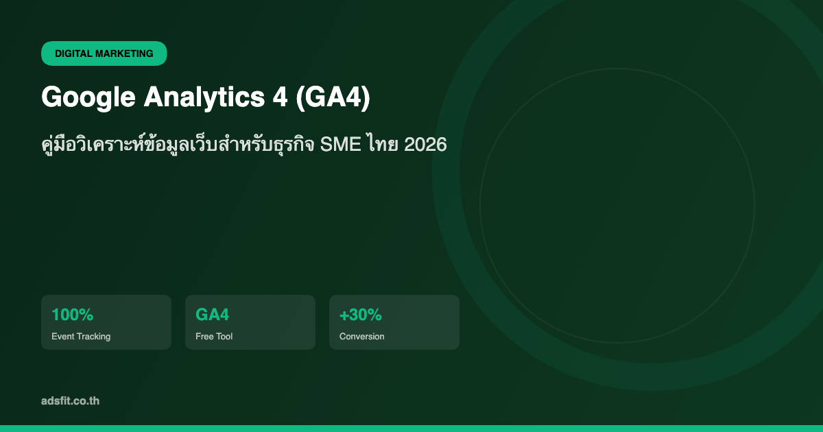 Google Analytics 4 คือเครื่องมือฟรีที่ทรงพลังที่สุดสำหรับวิเคราะห์เว็บไซต์ในปี 2026 ธุรกิจ SME ไทยที่ยังไม่ได้ติดตั้ง GA4 กำลังเสียโอกาสในการทำความเข้าใจลูกค้าและปรับปรุงยอดขาย