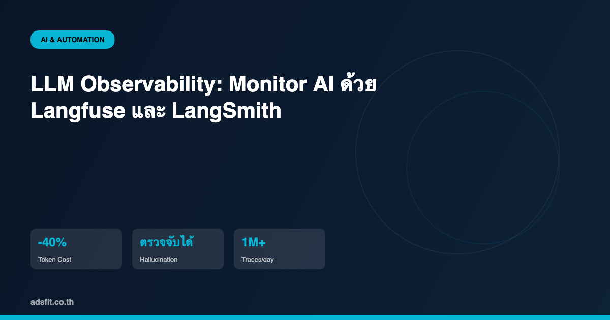 หากทีมของคุณกำลังสร้าง AI Agent, Chatbot, หรือ RAG Application และต้องการออกแบบระบบ Observability ที่สแกนได้ตั้งแต่วันแรก ทีม ADS FIT พร้อมให้คำปรึกษาแบบครบวงจร [ติดต่อเราวันนี้](https://www.adsfit.co.th/contact) หรืออ่านบทความ [RAG Retrieval-Augmented Generation](https://www.adsfit.co.th/blog) และ [MLOps](https://www.adsfit.co.th/blog) เพิ่มเติมบนเว็บไซต์ของเรา