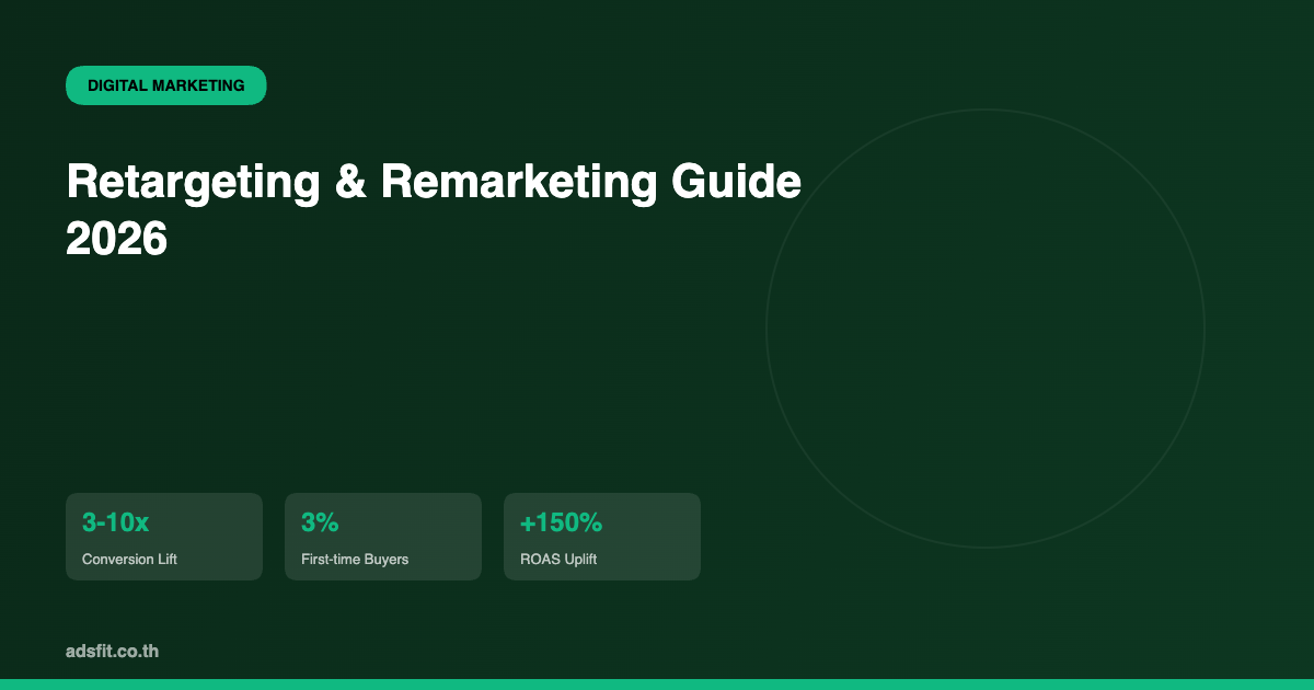 จากข้อมูลอุตสาหกรรมในปี 2026 พบว่ากว่า 97% ของผู้เข้าเว็บไซต์ครั้งแรกจะไม่ตัดสินใจซื้อทันที หากคุณปล่อยให้พวกเขาจากไปโดยไม่มีการติดตาม คุณจะสูญเสียยอดขายมหาศาล บทความนี้จะสอนคุณวิธีตั้งแคมเปญ Retargeting แบบมืออาชีพ ตั้งแต่พื้นฐานจนถึงเทคนิคขั้นสูงที่ SME ไทยสามารถนำไปใช้ได้ทันที